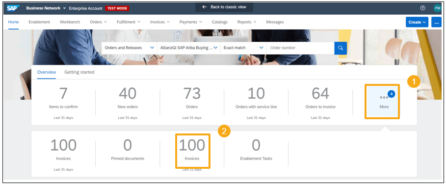 On your Ariba Network dashboard, click “More” -> “Invoices”, then edit the filter if your invoice is older than 31 days. Then the invoice status can be shown.